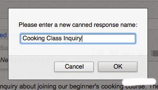 - Name your response. Call it something that will help you remember when to use your canned response, such as "email invitation" or "thank you for coming."